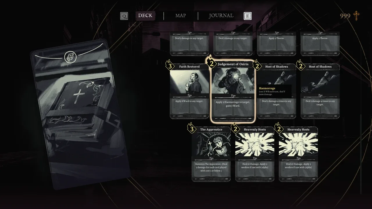 Expose, endure and expel evil from innocents on your hunt through a corrupted city. As Noah, former priest turned demon-hunter, you'll perform exorcisms, forge precarious alliances and strengthen your deck of arcane tricks in this unholy roguelite deckbuilder.