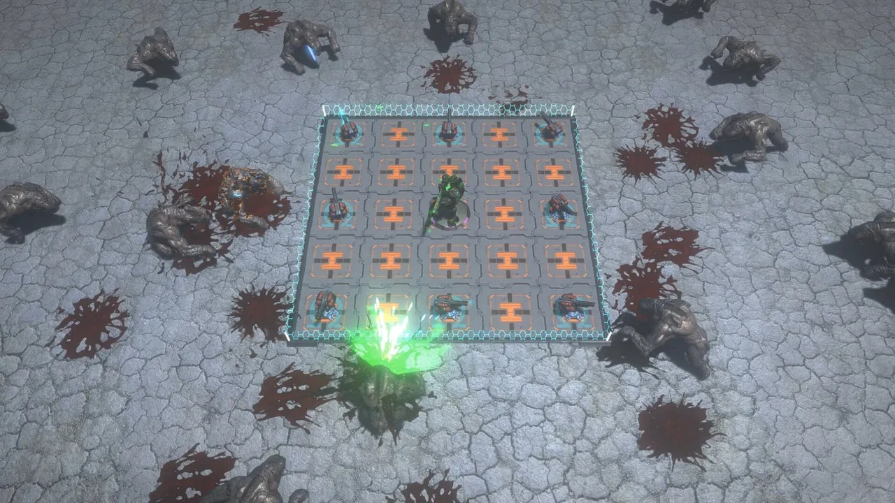 Un juego de defensa de torres en el que cada torreta tiene una mecánica única. Puedes colocarlas libremente en una cuadrícula de 5×5, y tu objetivo es eliminar a todos los enemigos.