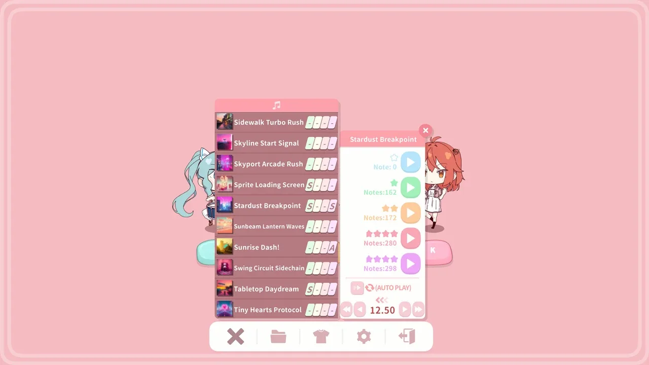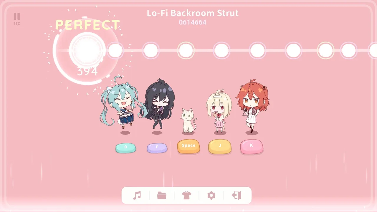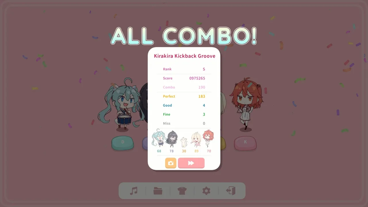 Just drop in your favorite song—done! A cute rhythm game that auto-generates multiple difficulties. Play comfortably with any key and clear a song your way with five friends.