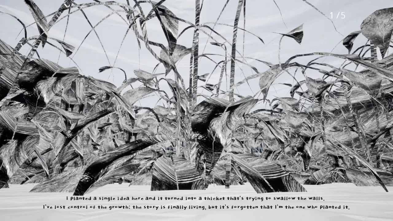 Adéntrate en un borrador que se niega a quedarse quieto. MOTE: El Manuscrito es la tercera entrega de la serie MOTE, un simulador psicológico de caminata ambientado en el paisaje mental en ruinas de un escritor en apuros. Juegas como un pequeño vagabundo que recorre tres inquietantes niveles laberínticos construidos a partir de las propias páginas: Garabatos, Páginas en Blanco y Papel Arrugado. Con una interfaz de usuario mínima, un diseño de sonido inquietante y cambios de postproceso alucinantes, cada pasillo parece un pensamiento que se rompe en mitad de una frase. Descubre breves registros de audio que insinúan la historia que va desentrañando el escritor, y afronta un puñado de pequeños rompecabezas.