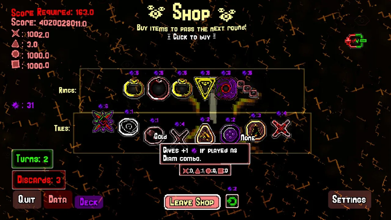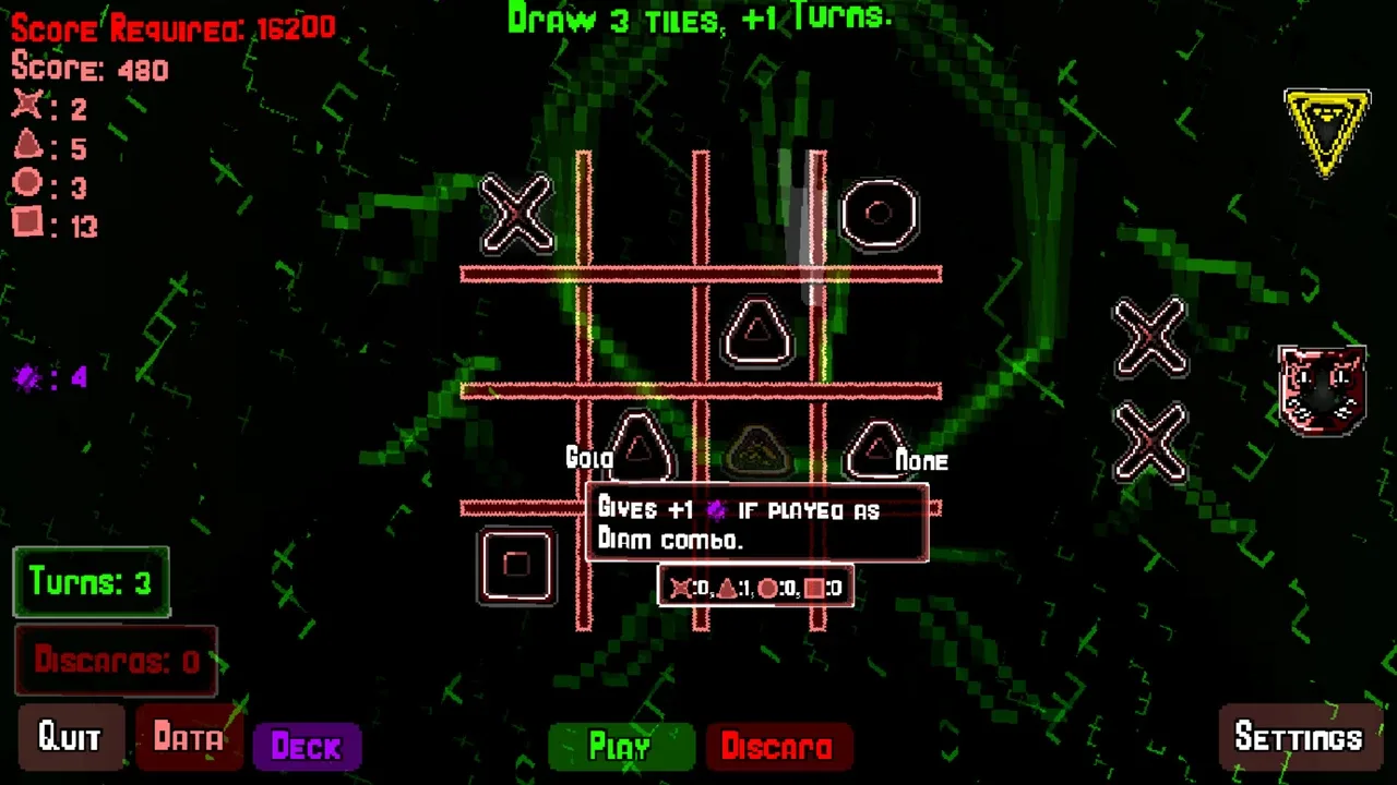 Nodosis is a tic-tac-toe-inspired rogue-like deckbuilder where you play an endless game of high-scores, tile synergies and mysteriously accursed rings. Score, Retrigger, Multiply, Modify, Win and Lose. It's up to you how you want to play this game, Nodosis. Willing to take the chance?