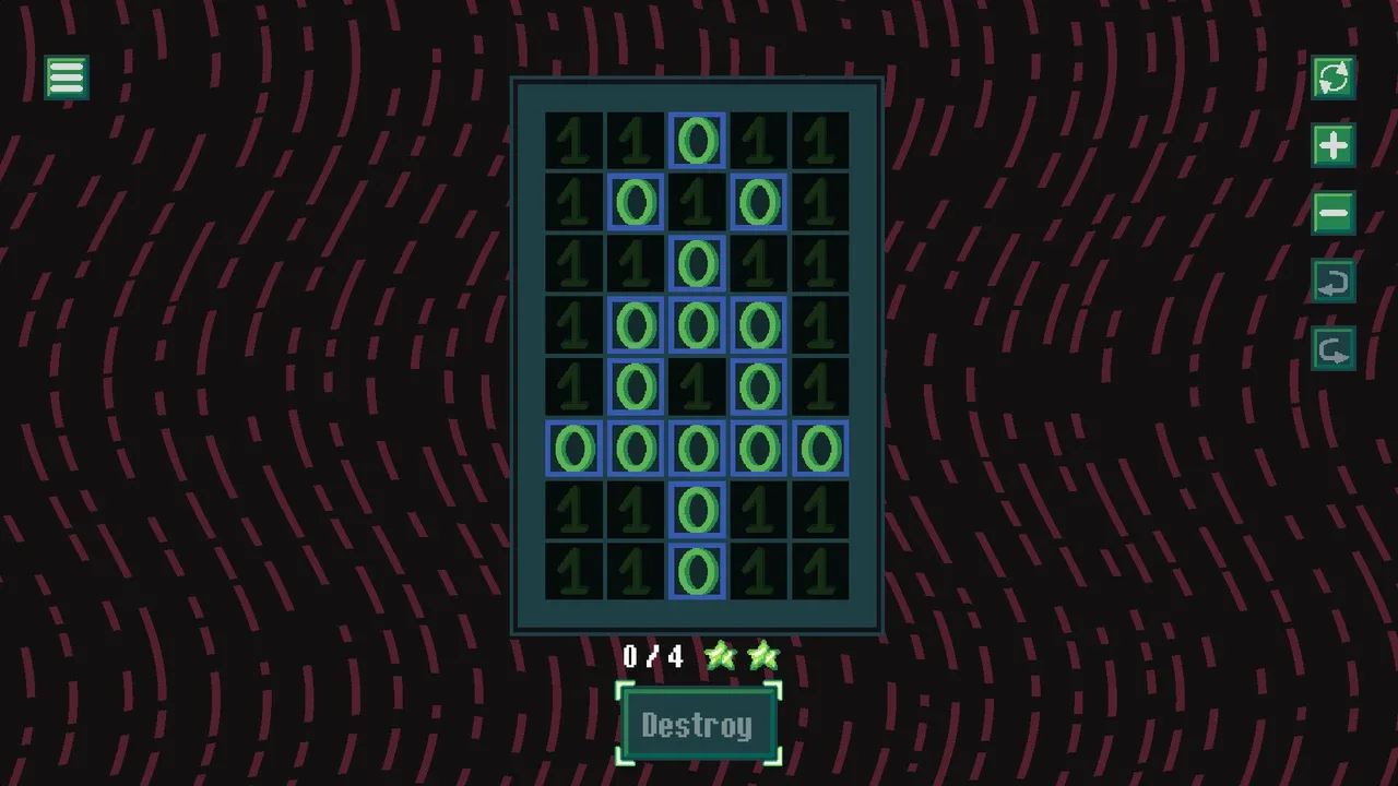 Logic puzzle game where you must destroy paths of 0-s from the board. Use logic to complete levels with optimal solutions.