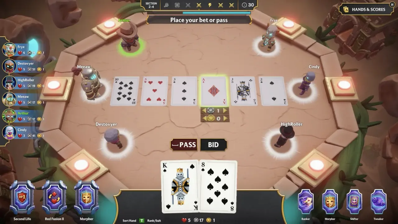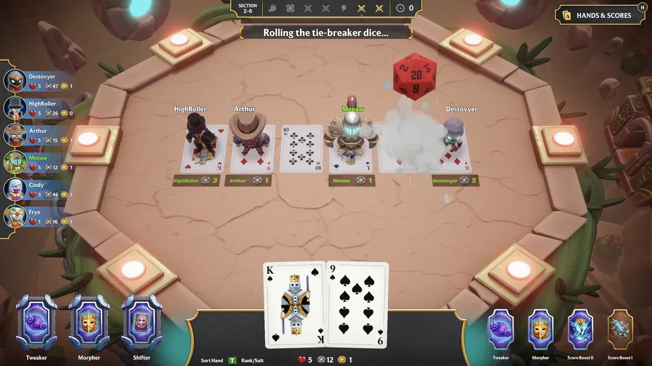 ¡El póquer se encuentra con Battle Royale en One Last Hand, un caótico party game de 2-6 jugadores en el que el póquer se vuelve mortal! Olvídate del juego limpio: ataca a tus rivales con poderosas manos, lucha por conseguir mejores cartas en subastas secretas y rompe las reglas con poderosas reliquias en emocionantes partidas multijugador online.