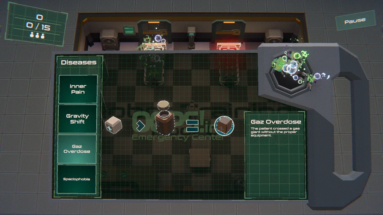 ¡Dirige el hospital más caótico de la galaxia en Oops! Inc. ¡Centro de Urgencias! Juega como un médico robot sin diploma, diagnostica extrañas enfermedades espaciales, elabora los remedios adecuados y trata a los pacientes rápidamente antes de que el seguro te convierta en una nevera. ¡Divertido, frenético y fuera de este mundo!