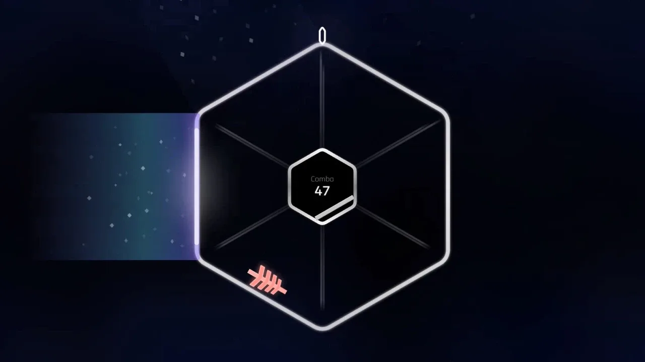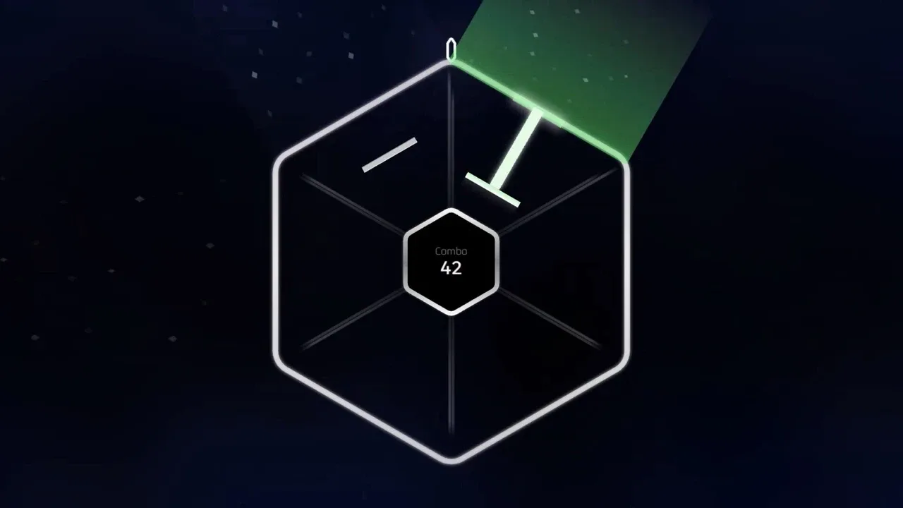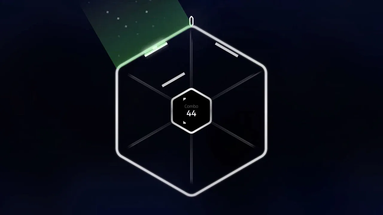 Un juego de ritmo hexagonal que se juega con un mando o una pantalla táctil.