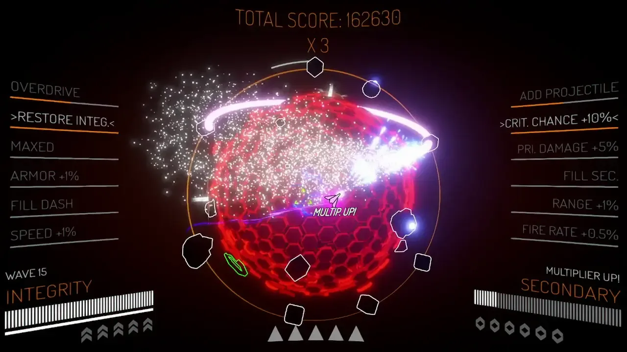 Orbital Overdrive es un shooter roguelite de alto octanaje en el que te enfrentas a hordas de enemigos implacables en la órbita de un planeta. ¡Elige entre cientos de habilidades y armas diferentes para crear la estructura más mortífera y aplastar a la resistencia!