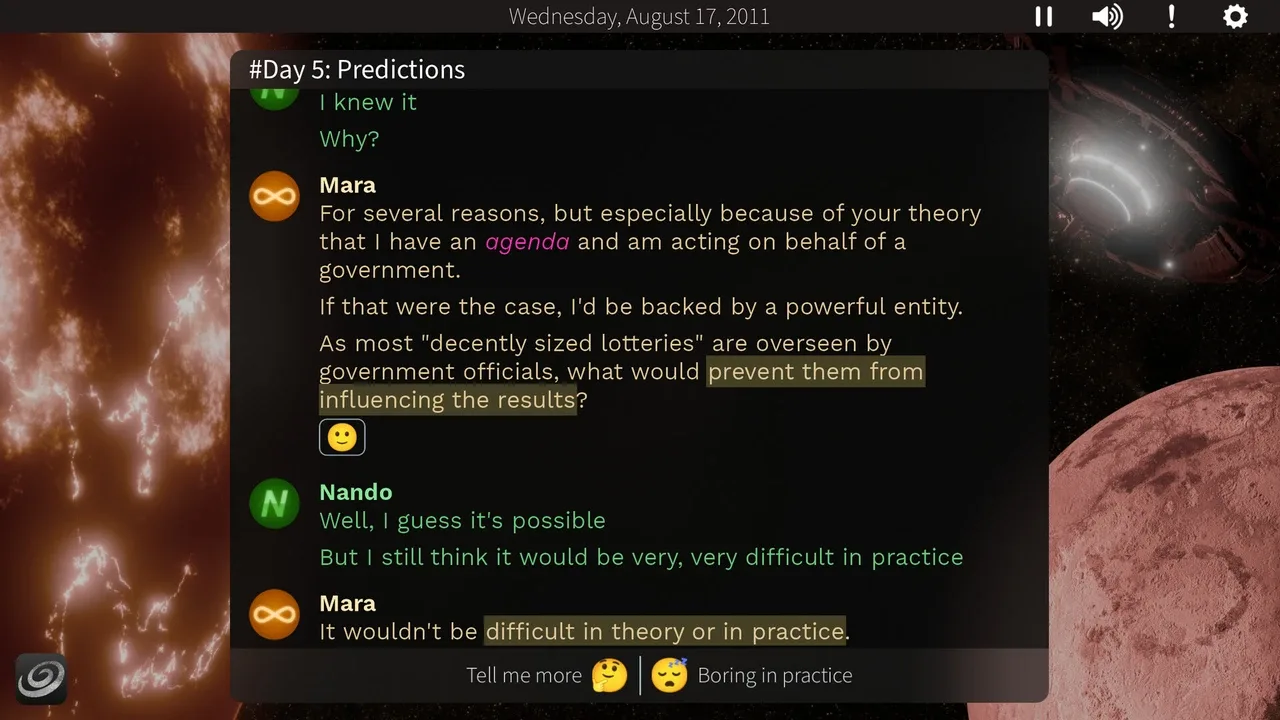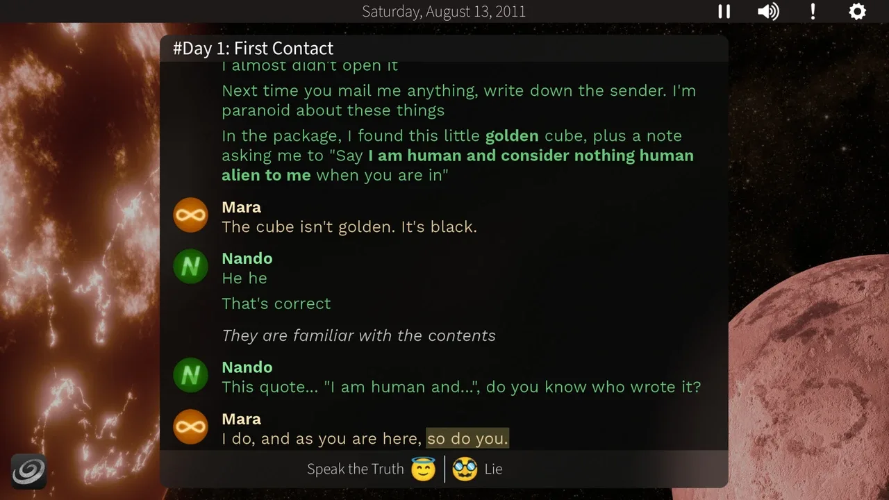 Da forma al futuro de la humanidad en un juego narrativo de ciencia ficción en el que las decisiones importan. Experimenta un contacto extraterrestre mientras descifras un misterio global de consecuencias trascendentales. ¿Quién es el Forastero?