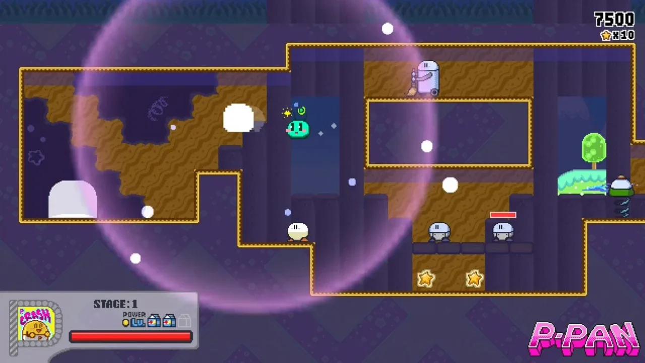 Armed with a big smile and punches that fly endlessly,have fun progressing! P-PAN can fly and hovering,so even if you're not good at play jumping action,this 2D action shooting game has simple controls that can enjoy.
