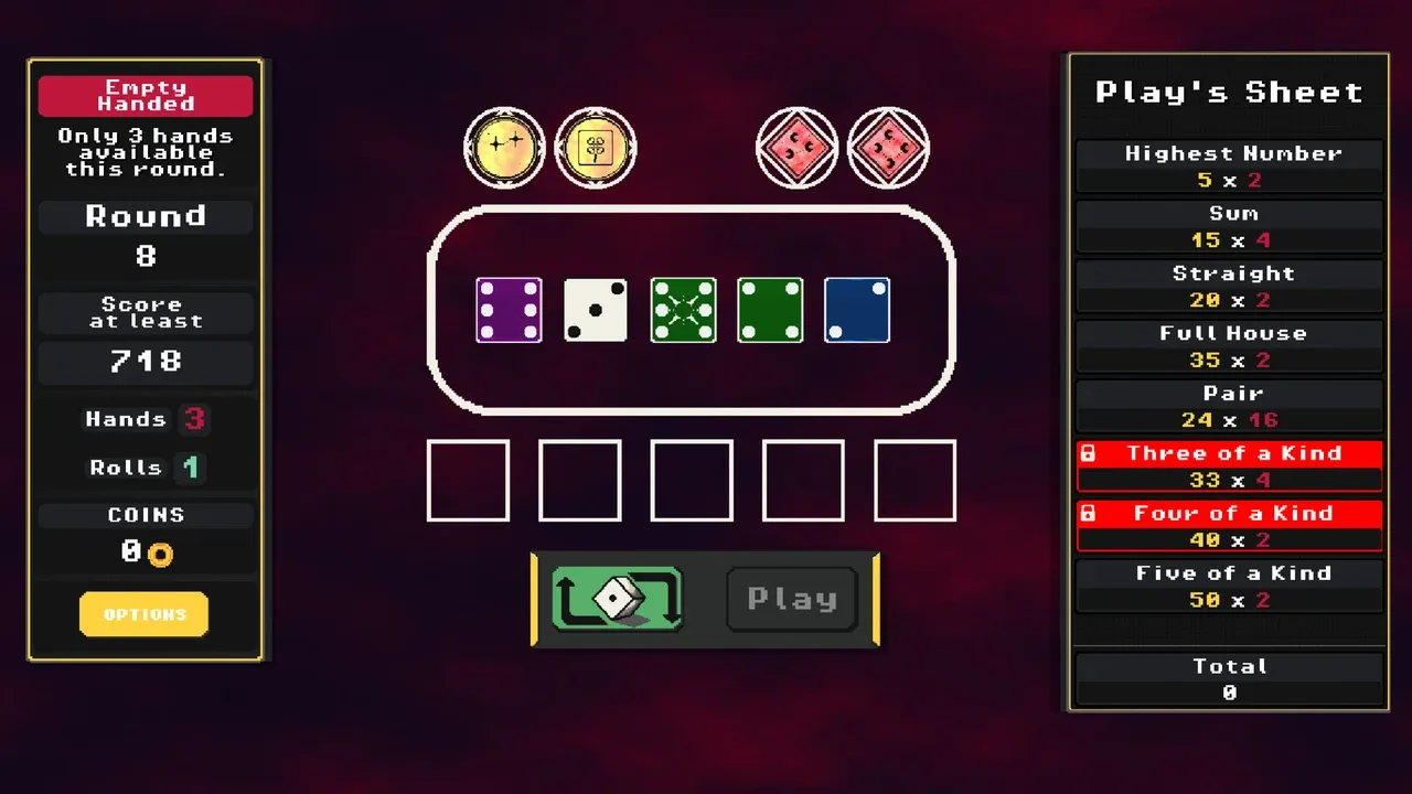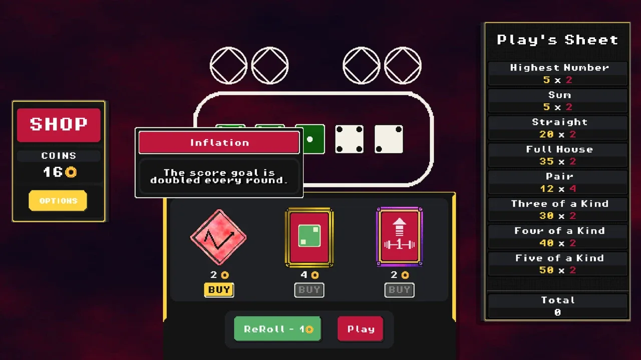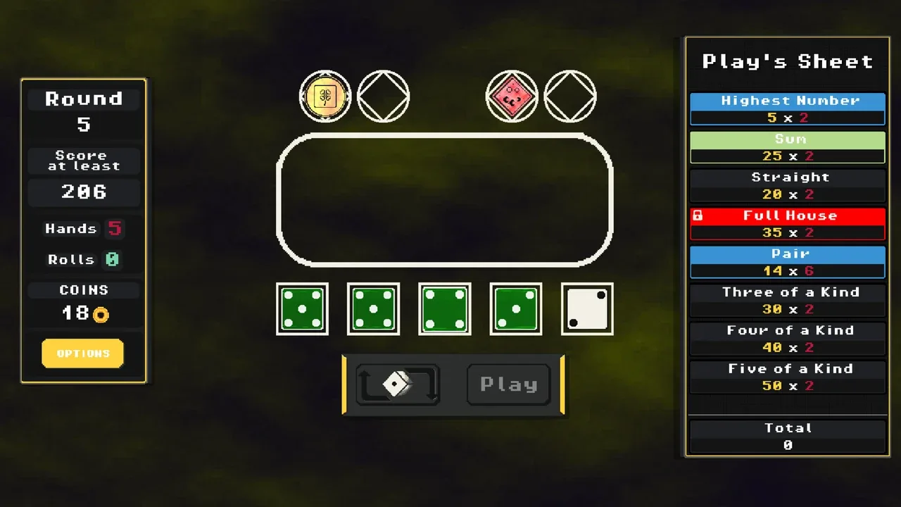 Construye. Tira. Doblega la suerte. Un roguelike constructor de dados de bendiciones, maldiciones y Yahtzee.
