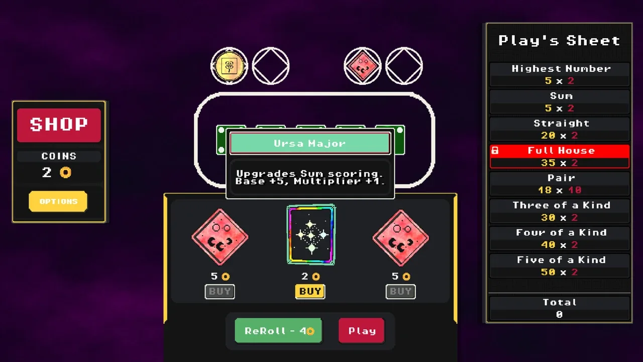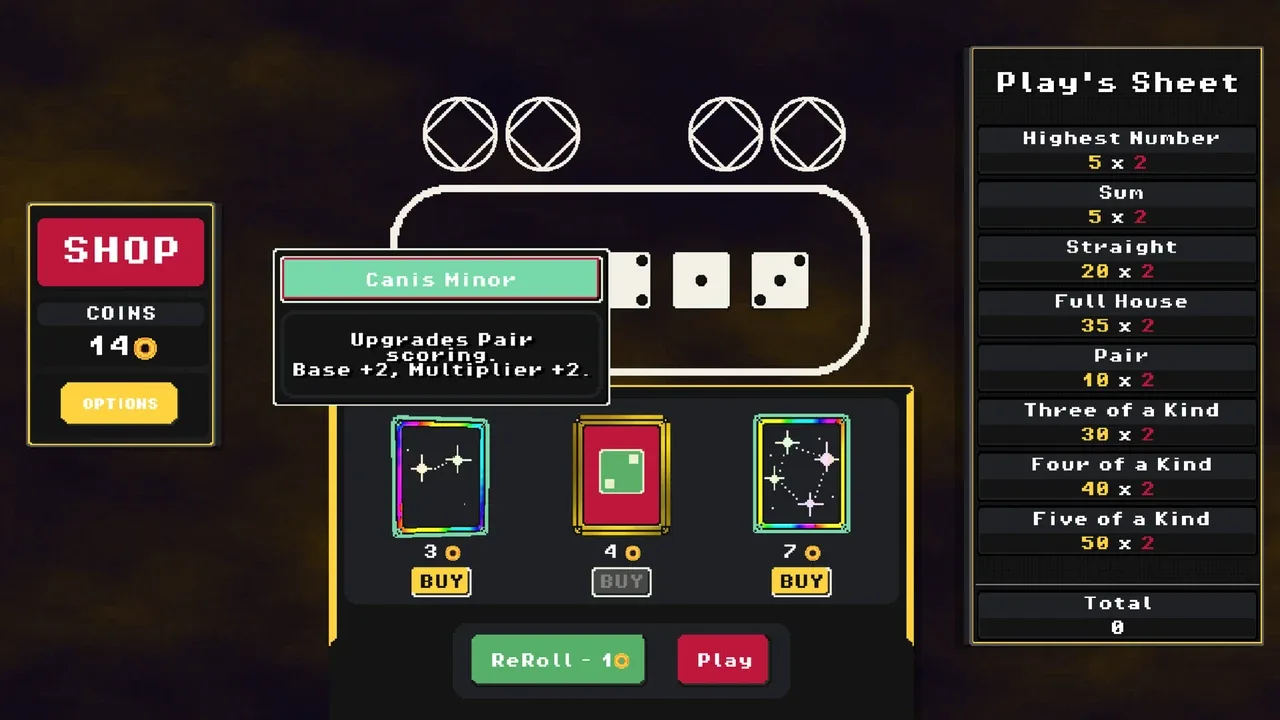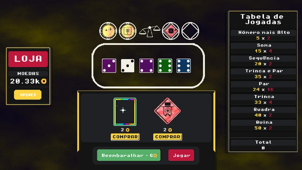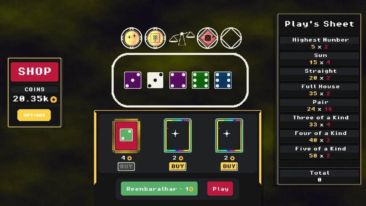 Construye. Tira. Doblega la suerte. Un roguelike constructor de dados de bendiciones, maldiciones y Yahtzee.