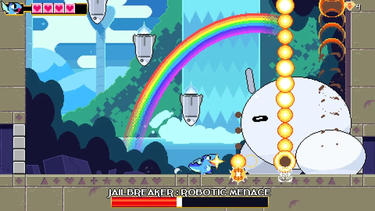 Panic in Puzzle World is an action-packed 2D platformer in the spirit of console classics. Play as Tide and breathe fire, slash with your claws, bounce on bad guys and glide with your wings to put a stop to the robot menace taking over the land, block by block!