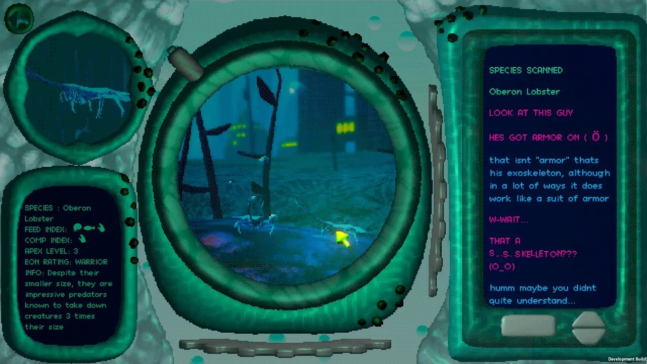 Panthalassa es una novela visual Point and click ambientada en un mundo alienígena submarino. Juegas como una IA que intenta descubrir los recuerdos del anterior propietario de su cuerpo. El juego te hace experimentar el mundo a través de diferentes interfaces de usuario, donde chocan los mundos físico y digital.