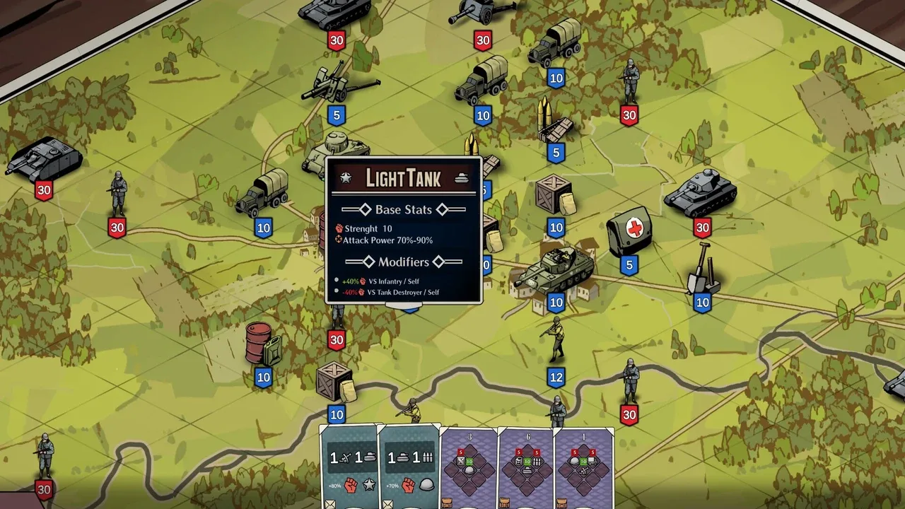 Panzer Deck is a tactical card-based war game. Deploy resources to recruit units and equipment. Use maneuver cards to reposition forces, maximize their potential, and synergize units for powerful combos. Secure victory on WWII’s Western Front battlefields.