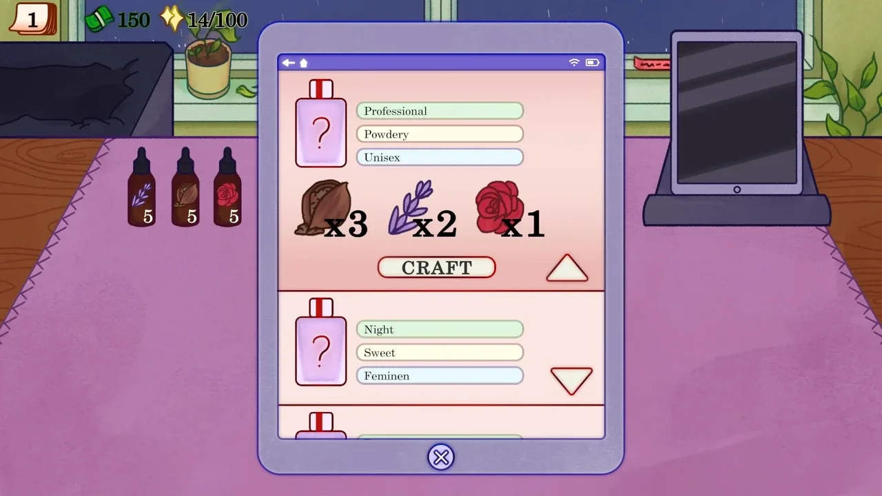 ¡Mezcla fragancias en tu acogedor taller de perfumería! Elabora fragancias únicas mezclando esencias, diseña bonitos frascos e intenta vender tus creaciones a clientes curiosos. Decora tu taller, desbloquea nuevas recetas y haz crecer tu reputación en el arte de la fragancia.