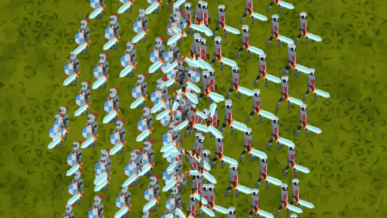 This game is a battle simulator. You can freely place hundreds of characters and have them fight automatically. There are three types of characters in total, and you can create up to four teams. You can freely set attack mode and defense mode.