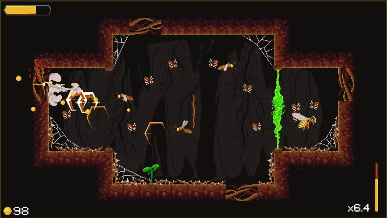 Polinizar o Morir es un roguelite de acción trepidante ambientado en los peligrosos páramos dejados atrás por la humanidad. Como uno de los últimos abejorros supervivientes, sólo tú puedes revivir la flora de la Tierra. Lucha contra enjambres de enemigos mientras buscas flores para polinizar y devolver la vida al planeta.