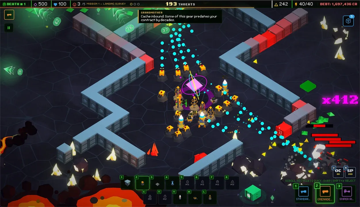 Construye y defiende una explotación minera en un planeta lejano en este shooter de defensa de torres en el cielo de las balas. Construye y mejora las defensas, lucha contra oleadas de enemigos de una corporación rival y gana suficientes créditos para comprar tu cuerpo y escapar de este agujero infernal del espacio profundo.