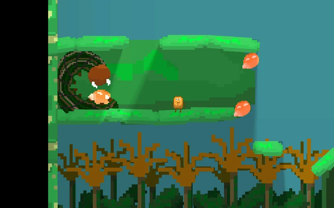 Pop Pop Potato is a rage game + 2D platformer where you blast yourself up the level with explosive corn kernels instead of jumping. You lose control in the air, so wherever you land, that's it, even if it's the bottom of the level.
