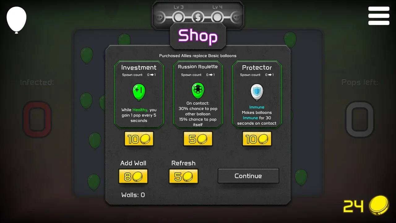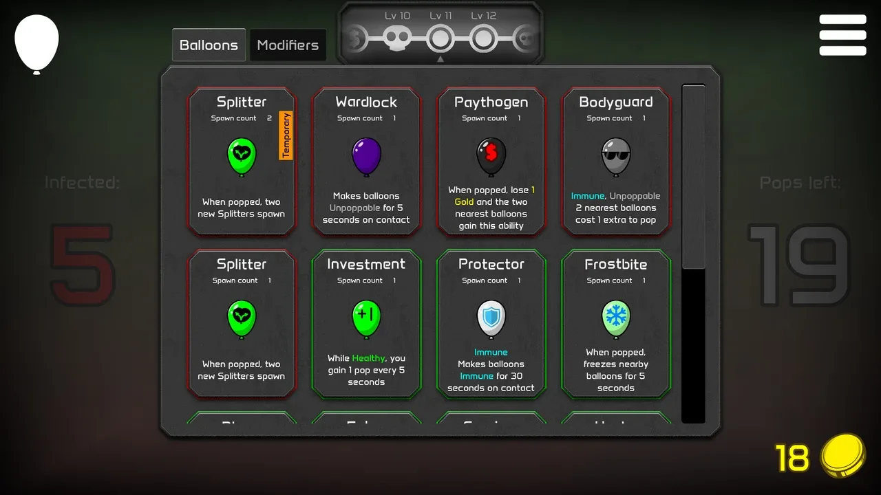 A fast-paced action-roguelike. Quickly identify and eliminate the infected balloons, draft new hazards between rounds, and spend your gold wisely to build a strong roster.