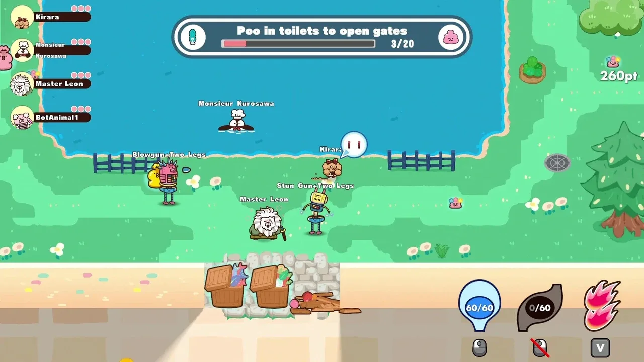 ¡Prepárate para una caótica acción de partido 4v2 en Pritto Prisionero! Encarna a traviesos animales reclusos utilizando tácticas estratégicamente sucias de pipí/caca para burlar a los guardianes robóticos altamente personalizables. Escapa o quédate "dormido" en este juego de escape asimétrico. Fácil de aprender, divertidísimo de dominar.