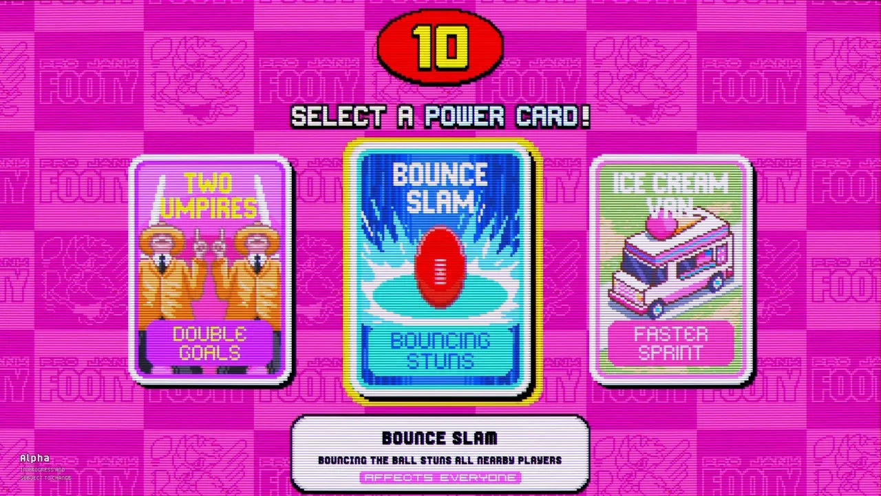 Pro Jank Footy is an over-the-top arcade comedy-sports game. Score goals to unleash game-changing power-ups, build a deck of absurd abilities, and tackle a season where no two matches are ever the same—solo or with your mates.