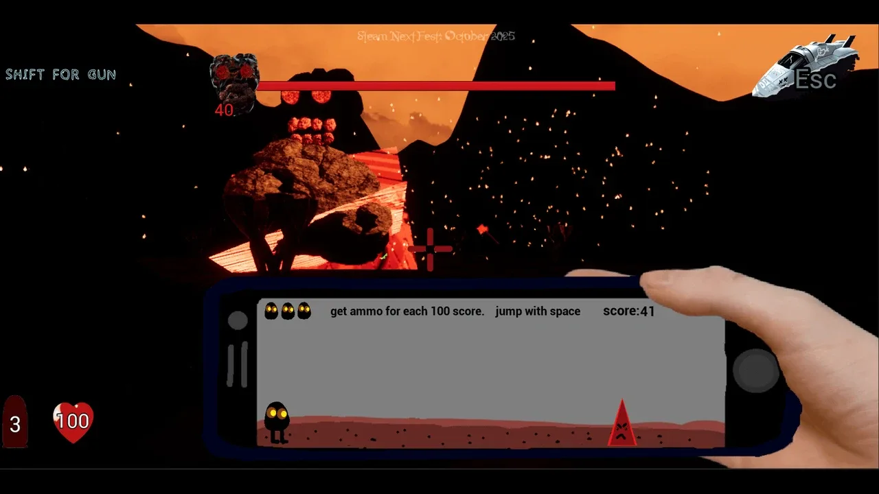 Protect Gloobi es un FPS de estilo arcade, similar a Souls, con un ambiente extraño y fuera de lo común, en el que divides tu atención entre destrozar a tus enemigos y reponer tu munición jugando al juego en tu teléfono, ¡durante tus desafiantes batallas a través de la galaxia!