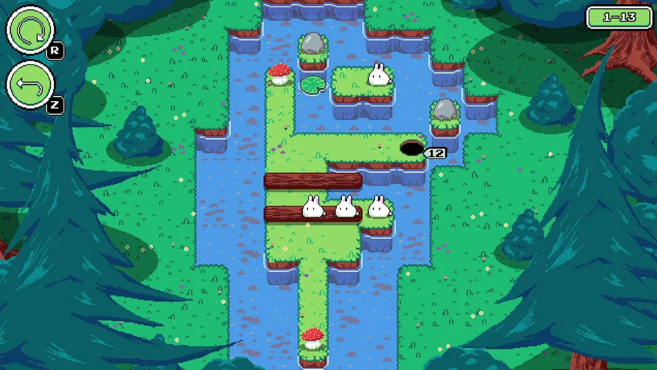 Guía a los astutos conejos hacia un agujero utilizando saltos inteligentes y movimientos limitados. Planifica cada salto con cuidado: ¡las ardillas, los troncos y los nenúfares añaden giros divertidos! Utiliza los obstáculos sabiamente para resolver puzles únicos que combinan lógica, sincronización y estrategia.