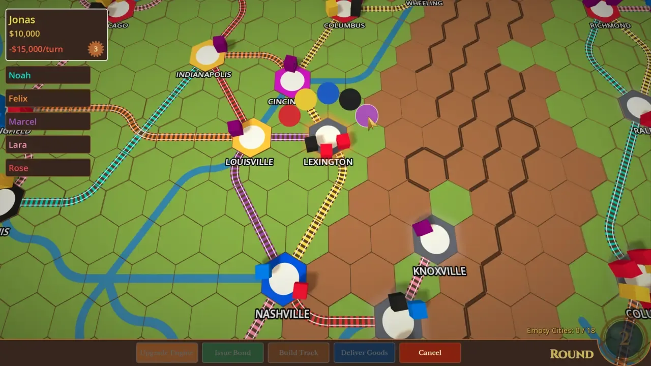 Rails & Rivals es un juego de mesa de estrategia por turnos en el que de 2 a 6 jugadores construyen redes ferroviarias en una cuadrícula de hexágonos, entregan mercancías de colores entre ciudades y compiten por la puntuación más alta. Los jugadores colocan losetas de vía por terrenos con costes variables, emiten bonos para obtener capital, mejoran su locomotora e industrializan las ciudades grises en ciudades de color para crear nuevos destinos de entrega. El juego termina cuando se vacía un número determinado de ciudades, y gana el jugador con más puntos de vía de ingresos.