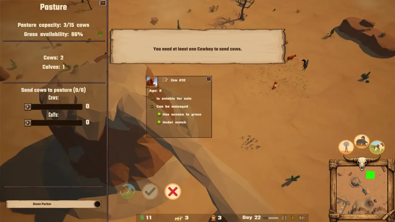 Ranchbound es un juego de estrategia y gestión en tiempo real de temática del Oeste, centrado en dirigir y ampliar un rancho. Los jugadores gestionan a los vaqueros y el ganado, asignan tareas a los trabajadores, transportan el ganado de un lugar a otro y toman decisiones económicas para mantener el rancho rentable y con vida. El juego combina planificación estratégica, ligeros elementos de supervivencia y una estilizada representación de la vida en el Salvaje Oeste.