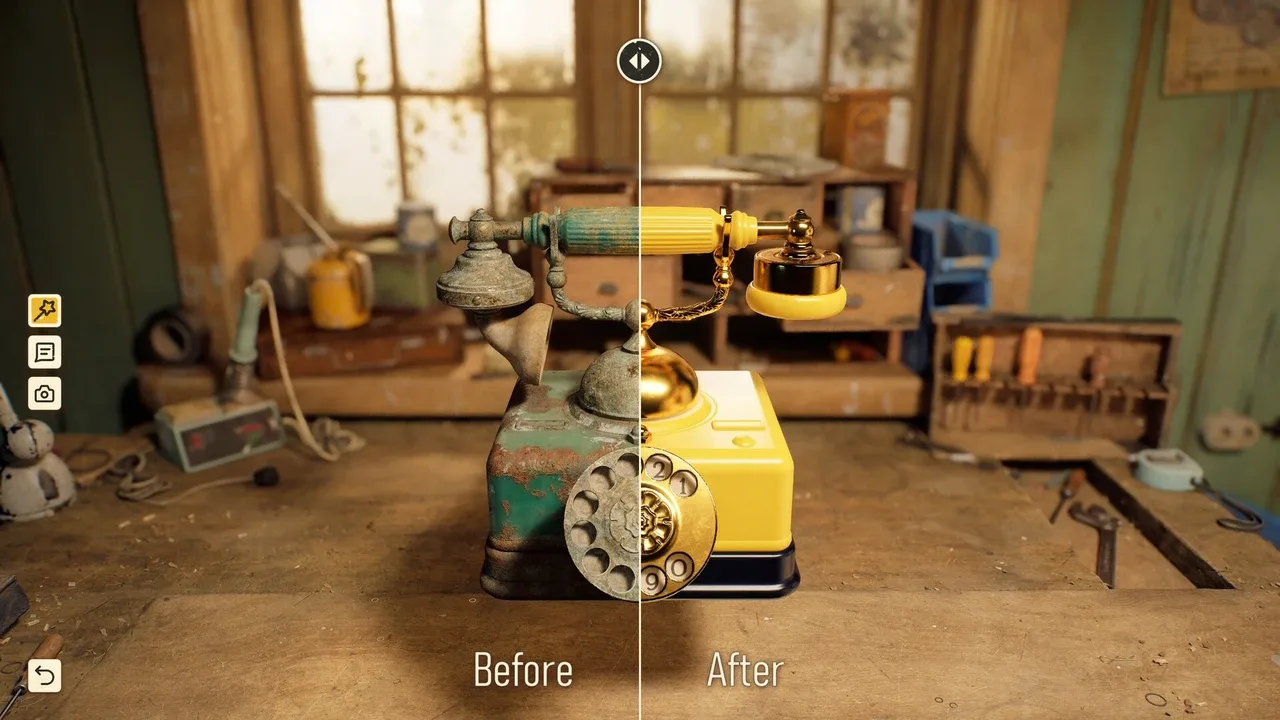 Restaura suavemente objetos antiguos limpiando las capas de polvo, óxido y tiempo. Reshine es una experiencia minimalista y relajante: utiliza una serie de herramientas para ver desaparecer ante tus ojos años de suciedad. Sin gestión ni presión: sólo tú y la satisfacción de devolver a la vida tesoros antiguos.