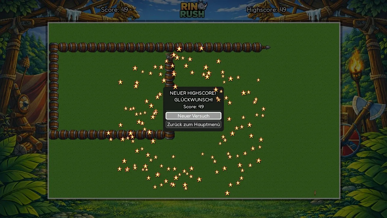 Rino Rush es un juego arcade de ritmo rápido inspirado en la fórmula clásica de Snake. Recoge monedas, crece e intenta sobrevivir el mayor tiempo posible.