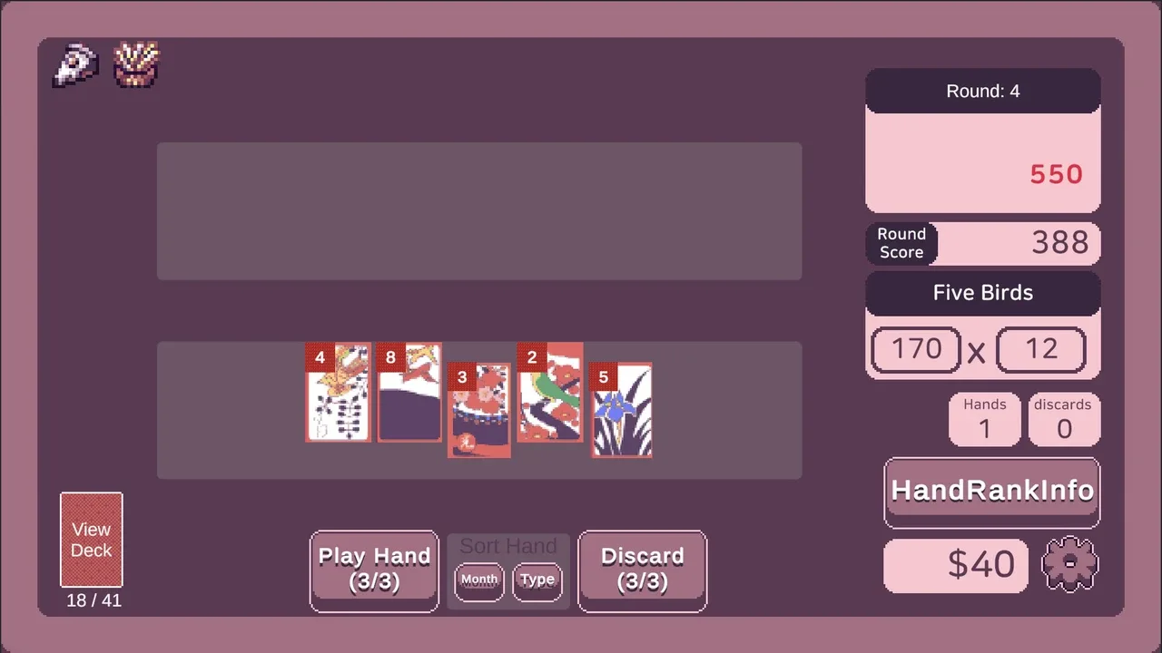 Un juego roguelike de construcción de mazos que combina con Hanafuda. ¿Nunca has jugado al Hanafuda? No te preocupes. Salta directamente y descubre un adictivo juego de cartas roguelike fácil de aprender pero imposible de dejar.