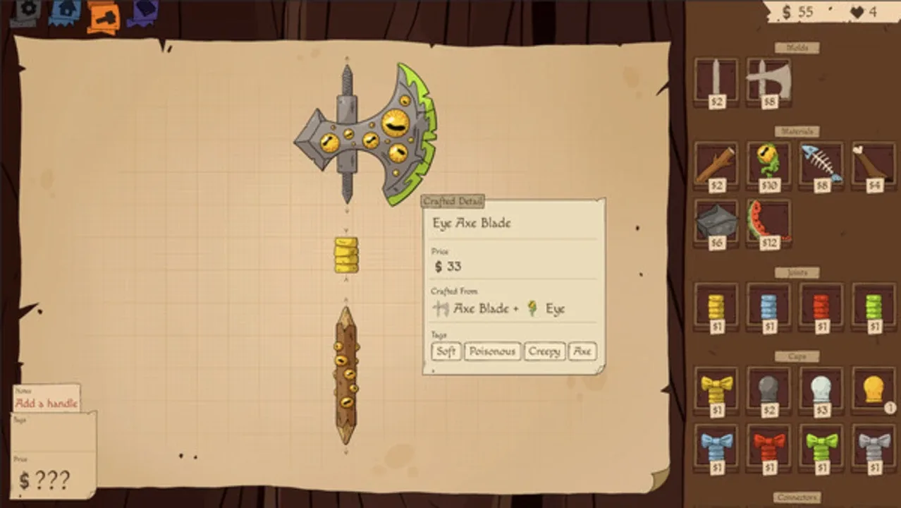 Roughly Crafted es un simulador de artesano en el que juntas trozos de monstruos y materiales extraños para crear armas únicas. Dirige tu propia tienda: experimenta con diseños, regatea con aventureros y haz crecer tu colección de piezas de artesanía. Recuerda: ¡la herramienta adecuada puede salvar la búsqueda de un héroe!