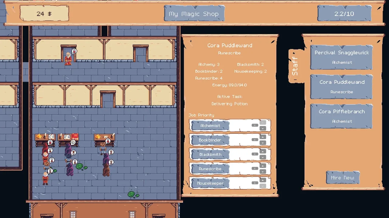 Welcome to the enchanting world of magic retail! Runes & Revenue is a cozy, hands-off management game where you manage your own magic shop. Recruit staff, unlock new mystical services. Strategically purchase upgrades to keep up with customer demand and ensure every adventurer leaves happy.