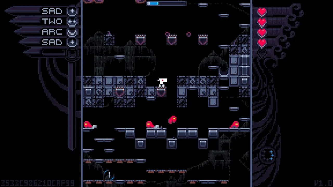 SAD GOD es un juego de plataformas-shooter-roguelike. Te invitamos a descender a un pozo de monstruos y trampas. Gana fuerza con las monedas y armas de los altares. Toca un orbe. Luego corre hacia la superficie antes de que te alcance la lava.