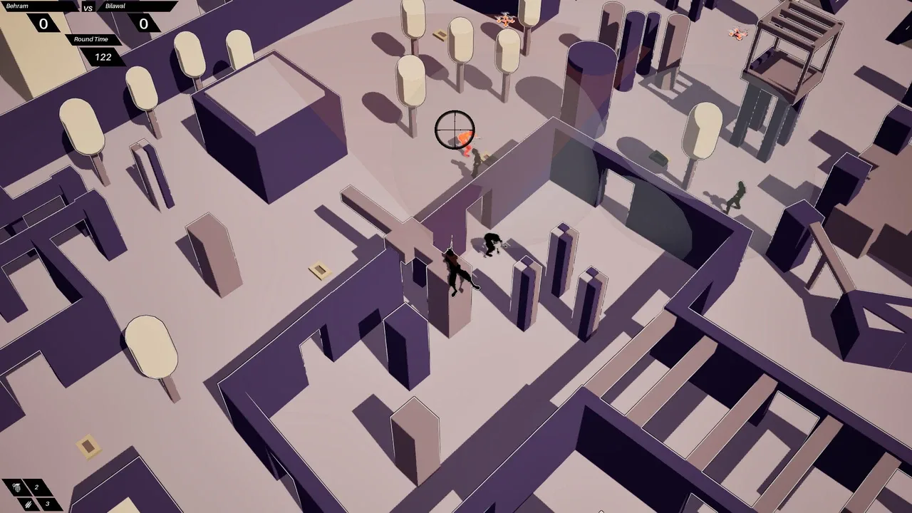 Dispara o te derribarán. Un duelo en línea de francotiradores 1v1 Top Down en el que las partidas se disputan al mejor de 3 rondas. Gana tres rondas para hacerte con la victoria. Cada bala, cada aliento y cada movimiento importan.
