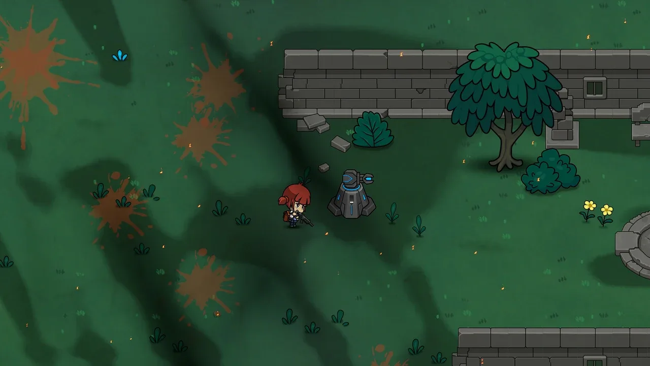 Seed 2313 blends top-down bullet-hell shooting with tower defense. You'll explore an infinite, randomized future world, travel between cities, build structures with various functions, and battle fiercely in ever-changing levels.