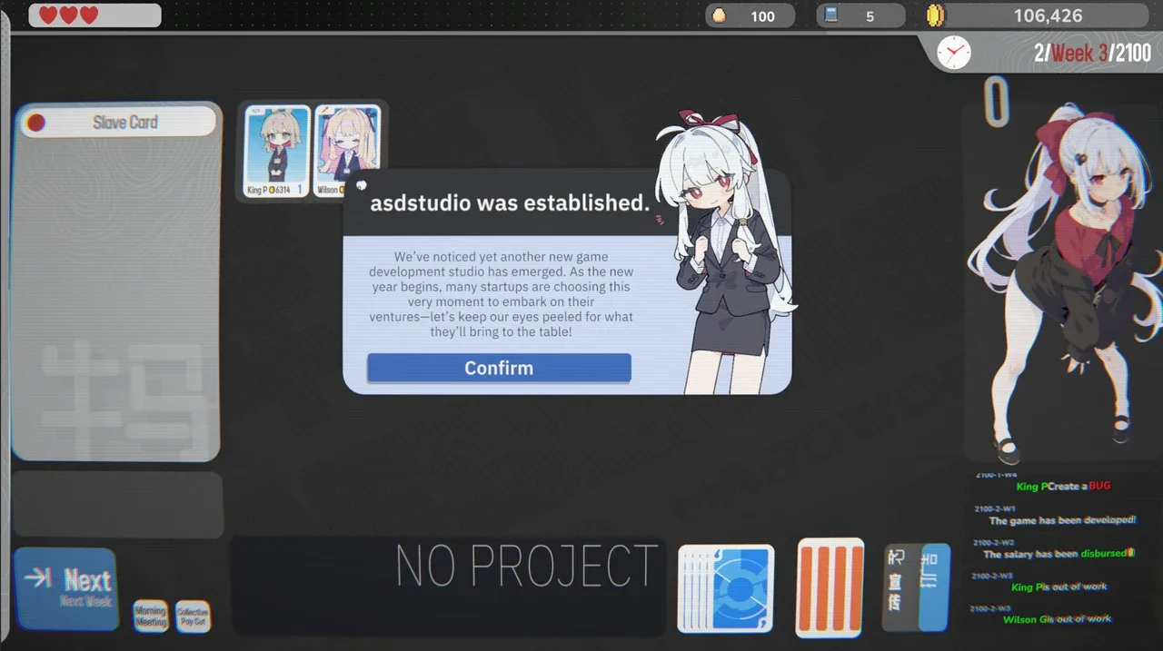 A turn-based simulation game, where you manage a game development company. You can choose to run the company honestly and diligently or resort to some unconventional methods.