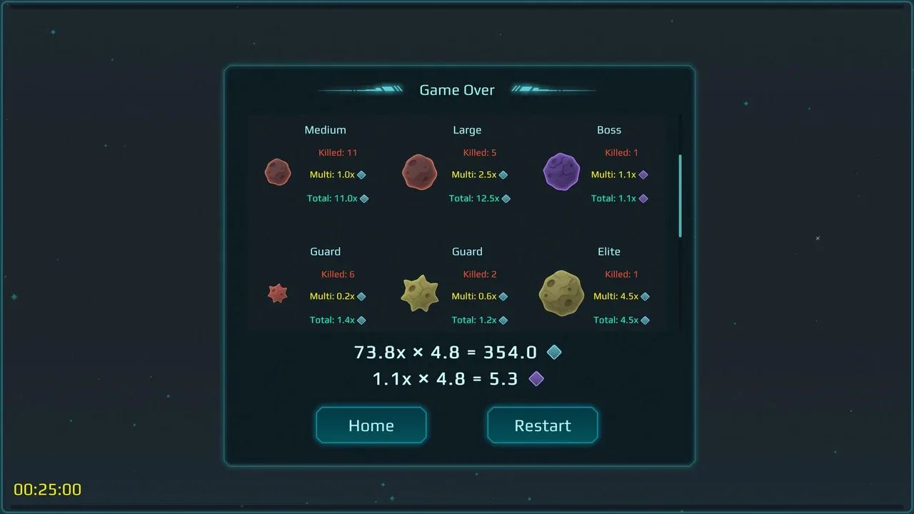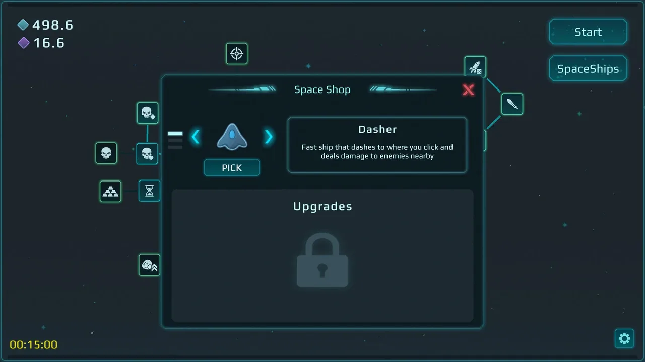 En Space Dash, cada movimiento es una explosión. Haz clic para lanzarte contra enjambres de enemigos rocosos, desatar devastadores daños de área y gastar oro para desbloquear mejoras, tirones gravitatorios, torretas y misiles para una acción sin fin