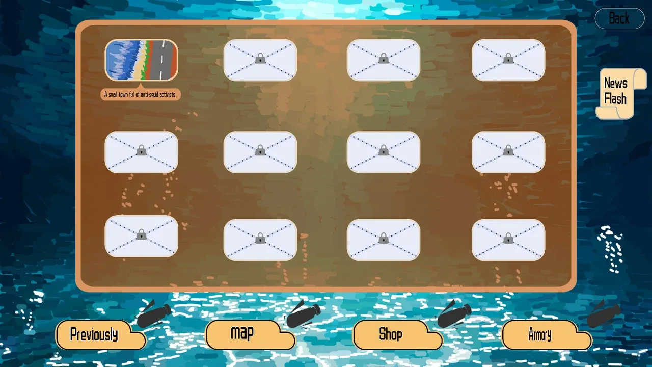 En XXXX, los calamares de aguas profundas reciben "comida nuclear" de las islas. Este festín antinatural desencadena su despertar, reviviendo la memoria perdida de la dominación mundial de los cefalópodos. Nota: Inspirado en los calamares fritos. Contiene alegoría. ¡No le des más vueltas! (risas)