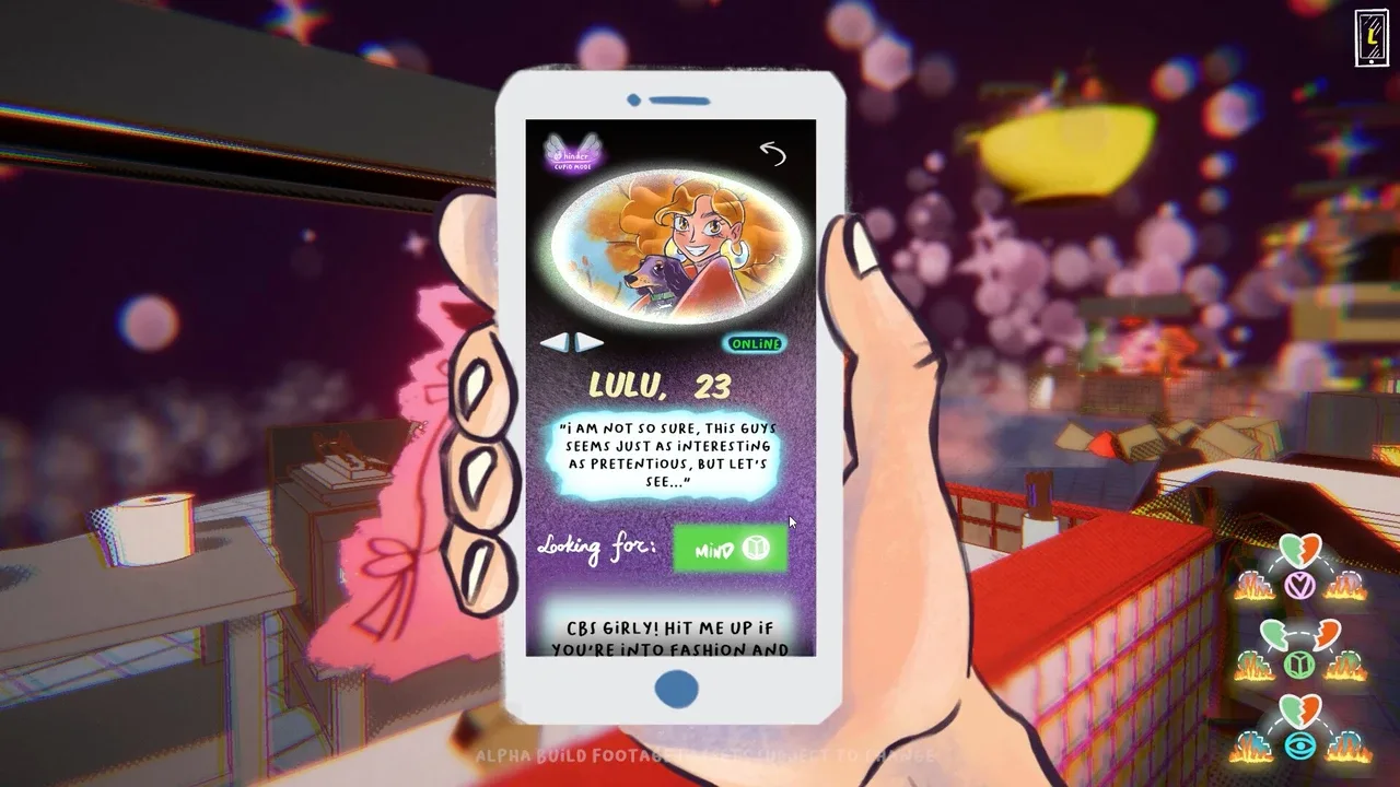 Un anti-simulador de citas que subvierte el género y proporciona catarsis a través de citas relatables, crudas y satíricas. Juegas como un cocinero de albóndigas mal pagado que, para llegar a fin de mes, es reclutado por un agente de una aplicación de citas poco fiable. ¡Ahora tienes que colarte en las citas para ganarte la vida!