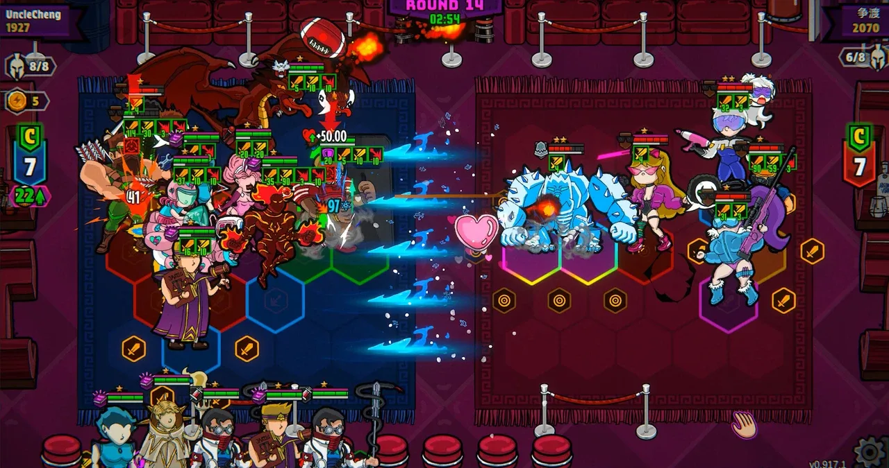 Combines auto-chess, cards, and war-chess with PVP. Use 75+ cards and 52 heroes, each with unique skills. Six summoners offer strategic bonuses. Explore 12 synergies and factions with creative tactics like economy or hero devouring. Rise through ranks in PVP with stunning hand-drawn art!