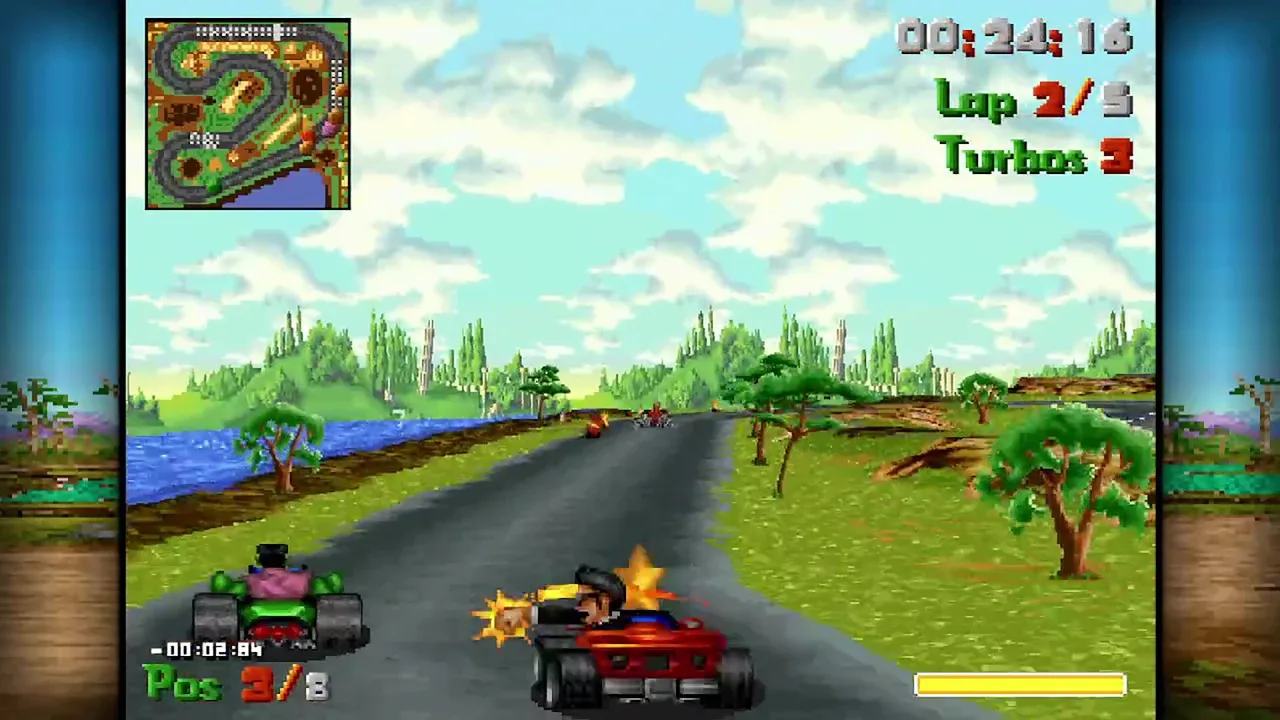 Street Racer es uno de los corredores de karts más locos y divertidos de los 90. ¡Corre, lucha y gana! ¡Velocidad y peleas en pistas locas! Un clásico que mezcla carreras y lucha, ¡trayendo de vuelta las batallas caóticas y el humor irreverente para hasta 4 jugadores!