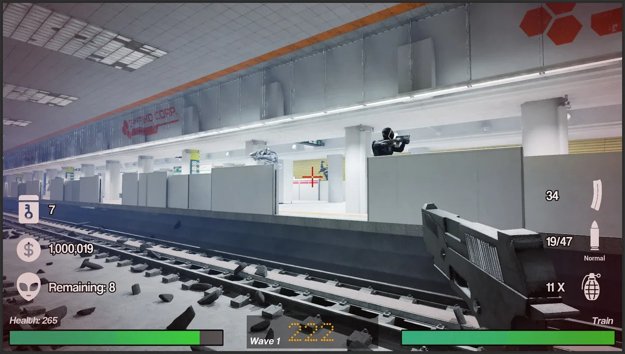 Defend a NYC subway train from relentless alien waves as a lone security guard. Scavenge scarce ammo, upgrade your pistol with attachments and sub-weapons, fortify chokepoints, and survive increasingly deadly assaults in this tactical wave-based shooter.