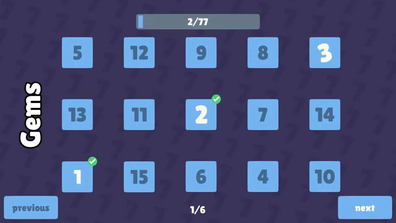 Elimina números seleccionando cuadrados de números cuya suma sea igual a siete. Evita bloquearte eligiendo cuidadosamente qué parte de la cuadrícula eliminar. Piensa con cuidado, compite contra tus amigos en el desafío diario, termina los niveles de gemas más difíciles o llega tan lejos como puedas en el modo sin fin.