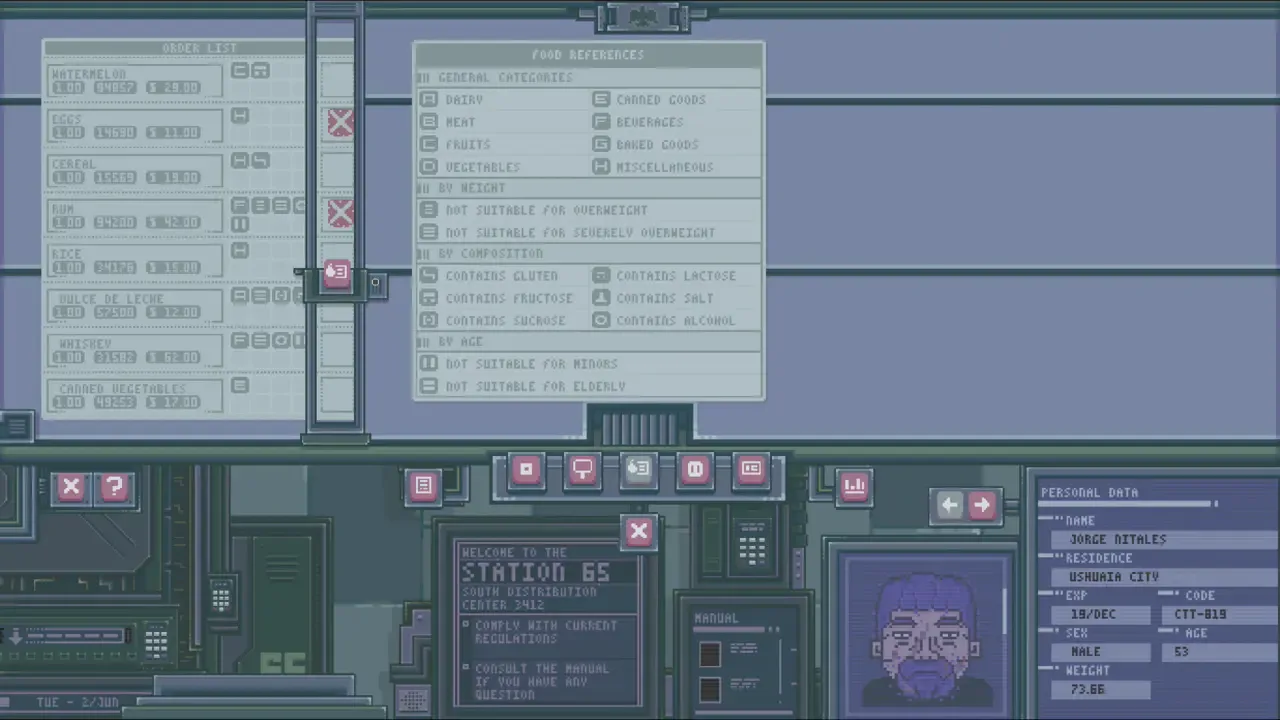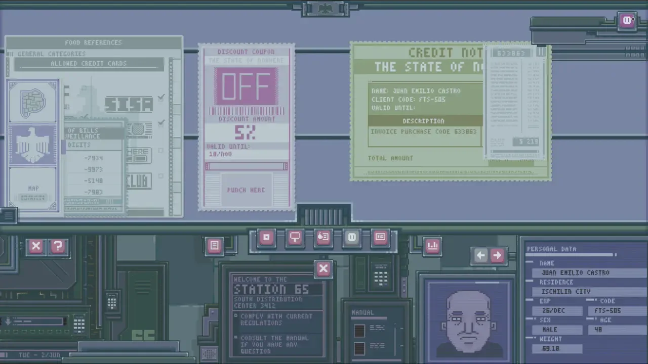 Assigned to station 65, your role as employee 100411 will be to serve and sell products to the people, exercising the controls the state deems necessary to keep the population in line