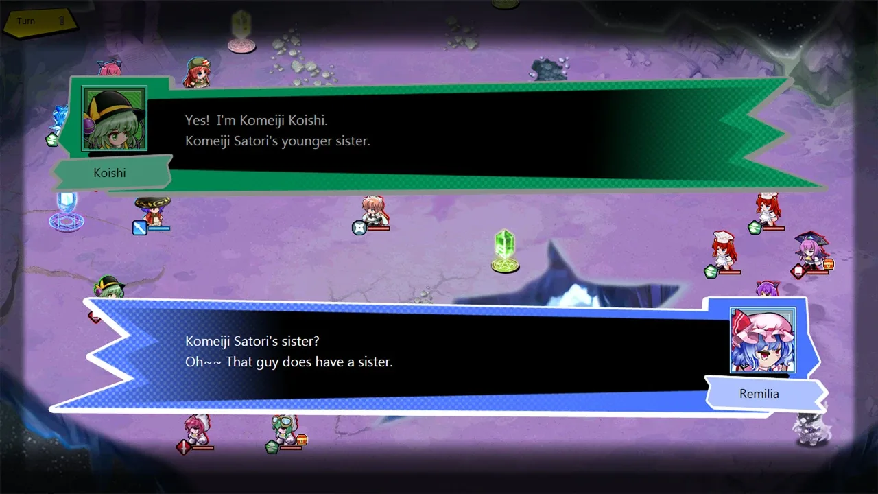 A Touhou Project SRPG game. Include: 30+PlayableUnits, 100 classes, 100+SpellCards, 100+EnemyUnits, 50+TouhouFanBgm and dozens of terrain types. Make Best Unit by combining class, talent, accessory, and tarot. U can even use SpellCards from other Units: sush as Koishi using FinalSpark