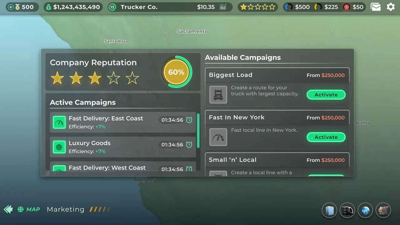 Crea y gestiona tu propia empresa de camiones. Crea rutas y transporta cargas por todo el mundo mientras amplías tu flota de camiones y centros logísticos. Truck Manager es uno de los más realistas del género de los simuladores, así que ponte a prueba y vence a tus amigos y a otros gerentes de la vida real.