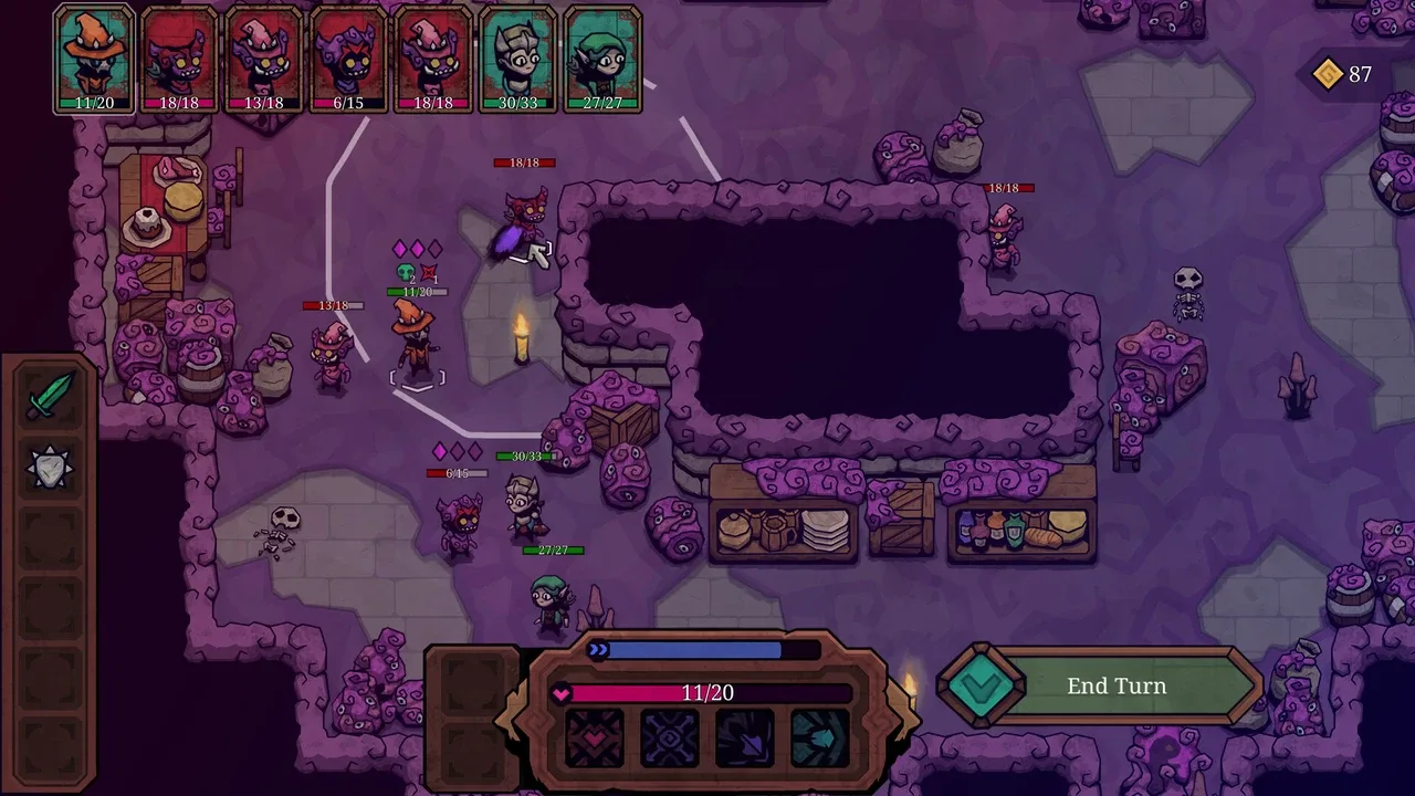 A turn-based roguelike with a deep ability-modification system. Lead a party of three heroes, adapt their skills using modifiers, collect artifacts, and craft unique builds to destroy the source of corruption… or die trying.