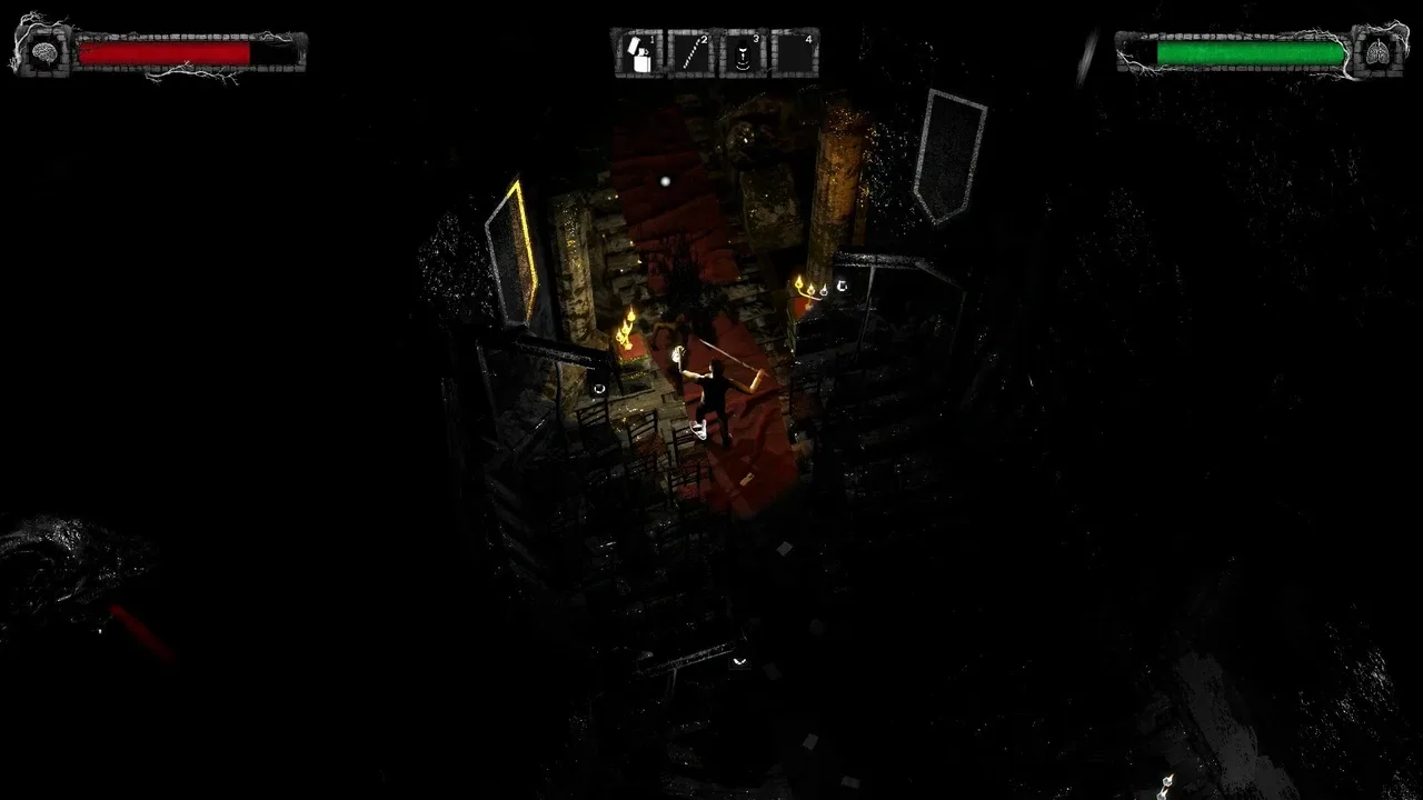 Recuperas el conocimiento. A tu lado hay una escalera rota y oxidada, y frente a ti se extiende un pasillo oscuro y con olor a humedad. A lo lejos, oyes el sonido del agua al caer. No tienes ni idea de dónde estás. Lo único que sabes es que debes ir más profundo.